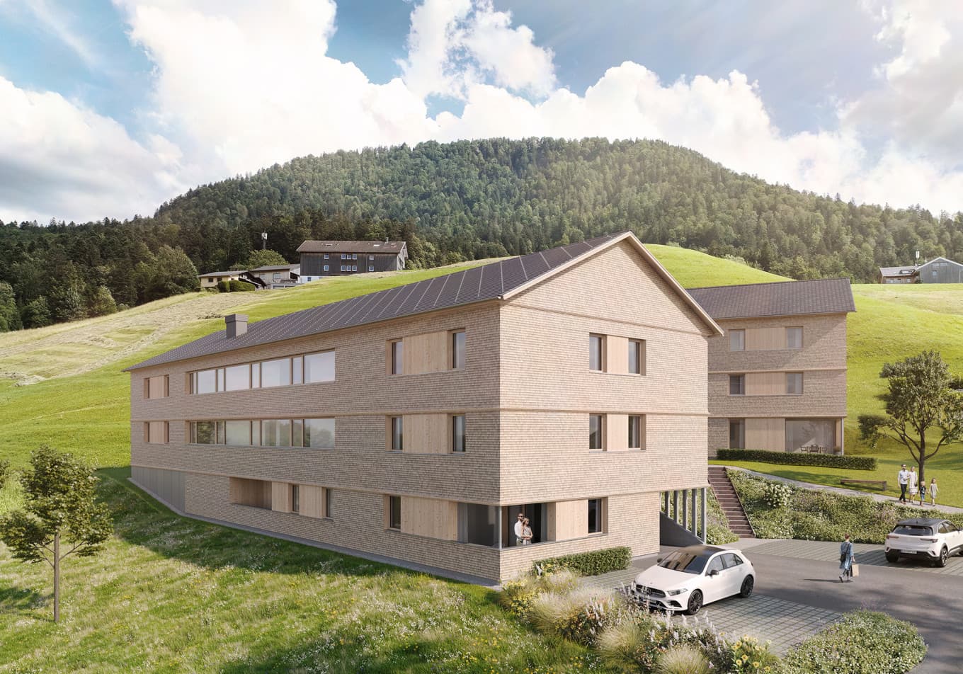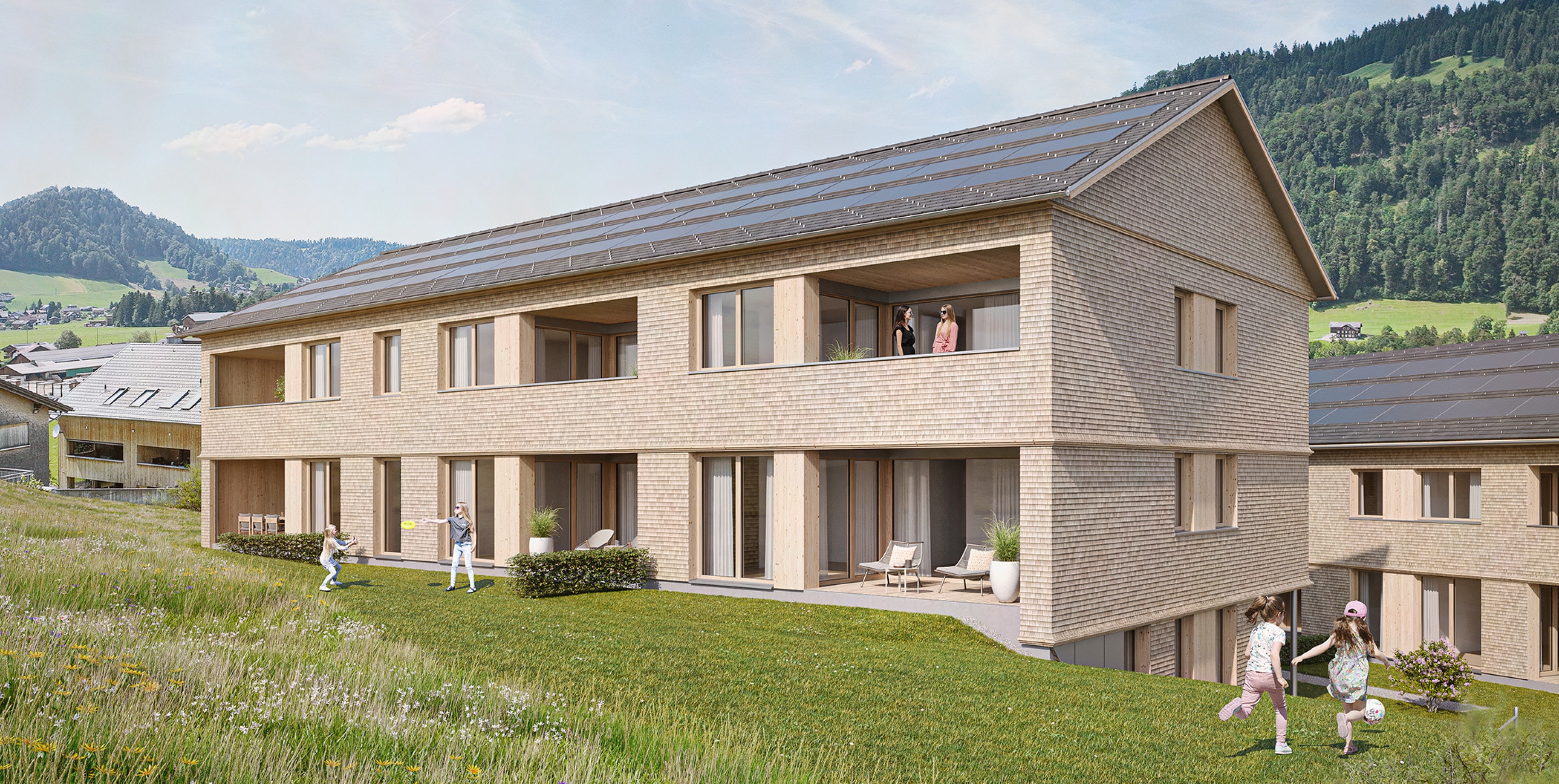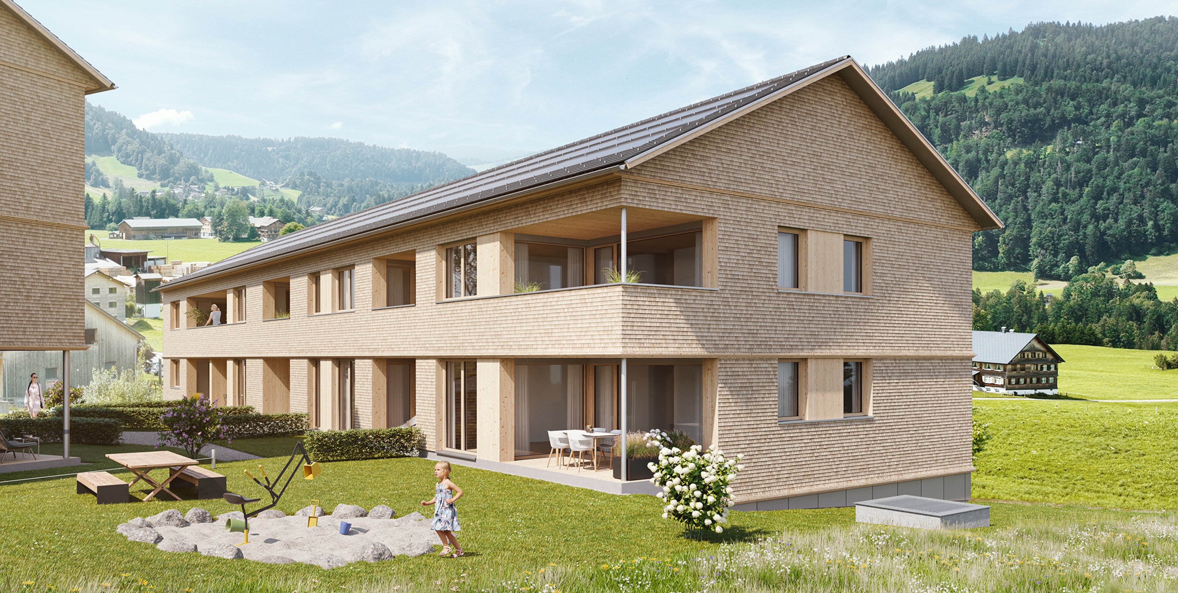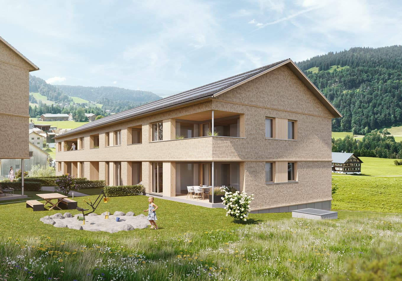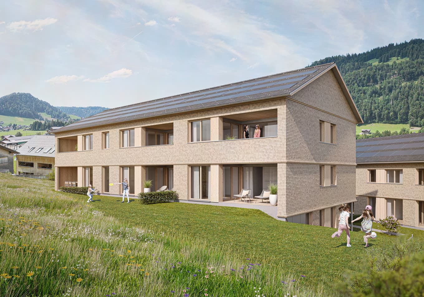 Wie sieht das Wohnen der Zukunft aus? Unser neues Passivhausprojekt in Hittisau – Nordhalden gibt eine klare Antwort: nachhaltig, regional verwurzelt und qualitätsvoll gebaut. Inmitten der wunderschönen Hittisauer Natur entstehen, verteilt auf zwei Baukörper moderne Wohnungen, die das Leben in den Vordergrund stellen. Der verkehrsfreie Bereich zwischen den Häusern schafft einen geschützten Raum für Begegnung, Gemeinschaft – und für die Jüngsten auch Platz zum Spielen: Ein eigener Spielplatz sorgt für zusätzlichen Lebenswert.